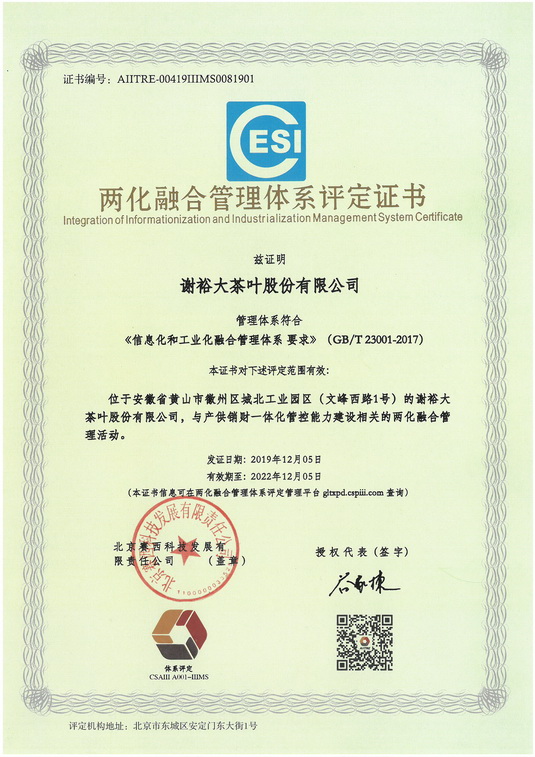 兩化融合管理體系評(píng)定證書