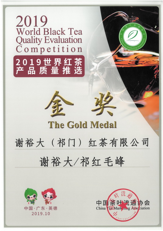 2019世界紅茶產(chǎn)品質(zhì)量推選金獎(jiǎng)