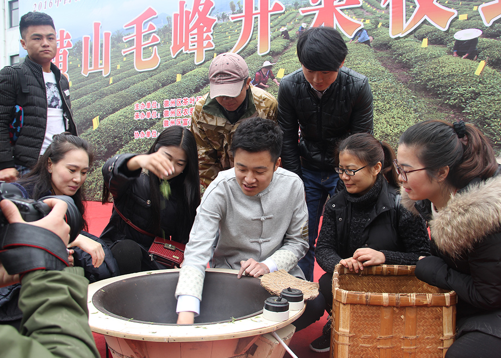 江南春雨催香芽,又是一年茶香季。3月30日,一年一度的黃山毛峰開采節(jié)啟動(dòng)儀式在黃山毛峰發(fā)源地——徽州區(qū)富溪鄉(xiāng)隆重舉行。此次開采節(jié)由徽州區(qū)茶葉行業(yè)協(xié)會(huì)主辦,徽州區(qū)農(nóng)委、徽州區(qū)旅委等政府單位承辦,謝裕大茶葉股份有限公司等各大茶企協(xié)辦。齊聚富溪鄉(xiāng)?;罩輩^(qū)、富溪鄉(xiāng)各領(lǐng)導(dǎo)蒞臨現(xiàn)場(chǎng),出席了開采儀式,市、區(qū)電視臺(tái)以及各媒體記者對(duì)本次開采節(jié)的盛況進(jìn)行了報(bào)道。