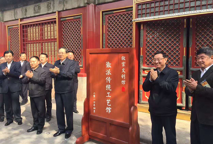 4月10日,“徽匠神韻——安徽徽州傳統(tǒng)工藝故宮特展”暨徽派文創(chuàng)館揭牌儀式在北京故宮博物院永壽宮舉行。省委書記、省人大常委會主任李錦斌,省委副書記、省長李國英,文化部部長雒樹剛,故宮博物院院長單霽翔出席儀式并共同為徽派文創(chuàng)館揭牌。文化部副部長項兆倫;省委常委、秘書長唐承沛,省委常委、宣傳部長虞愛華,副省長謝廣祥,省政府秘書長侯淅珉;市委書記任澤鋒,市委副書記、市長孔曉宏;省政府副秘書長汪韌,省文化廳廳長袁華;副市長陸群等出席儀式。