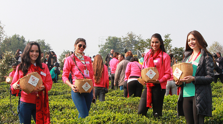 中國是茶文化的發(fā)源國,在中國文化語境里,悠久的茶文化賦予人們真善美;而美不僅僅是形態(tài),更是神態(tài),語言,文化韻味等多方面的綜合體。集采茶、做茶、品茶、茶藝表演等為一體的茶文化可以說是中國千年傳統(tǒng)美學(xué)文化的重要組成部分。28日當天,世界小姐們迎著朝陽來到了謝裕大生態(tài)茶園進行觀光體驗,晨曦云霧中漫山的茶樹,和煦陽光下熠熠生輝的新鮮嫩葉吸引了“世姐”們不斷駐足觀賞并親自上陣采摘,整個茶園一眼望去正是“綠意盎然遍蔥蘢,姣姣麗質(zhì)蘊其中”。