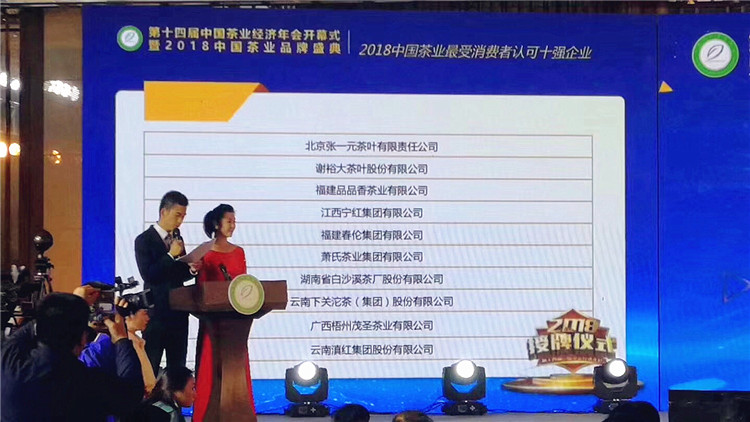 2018年11月15日上午,由中國(guó)茶葉流通協(xié)會(huì)主辦的第十四屆茶業(yè)經(jīng)濟(jì)年會(huì)暨在武夷山隆重舉行。會(huì)議中分別對(duì)今年七個(gè)行業(yè)品牌權(quán)威榜單進(jìn)行發(fā)布并進(jìn)行授牌儀式,謝裕大茶葉股份有限公司被授予“2018中國(guó)茶業(yè)最受消費(fèi)者認(rèn)可十強(qiáng)企業(yè)”。