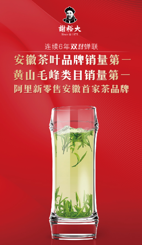 謝裕大”雙十一”捷報傳來:謝裕大于2018年天貓狂歡盛宴中,再獲雙料冠軍,榮獲安徽茶葉品牌銷量第一!天貓商城黃山毛峰類目銷量第一!自2013年起,連續(xù)6年謝裕大穩(wěn)居兩大頭把交椅,當屬安徽茶葉之光,光耀電商徽茶。更有天貓后天大數(shù)據(jù)統(tǒng)計,”雙十一”當天天貓商城黃山毛峰單品銷量前三甲都來自謝裕大品牌,黃山毛峰銷量遙遙領先,遠超第四名一倍多;綠茶大品類排名前5,行業(yè)占比分量增大,更重要的是,在天貓商城黃山毛峰類目排行第1名!