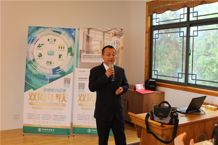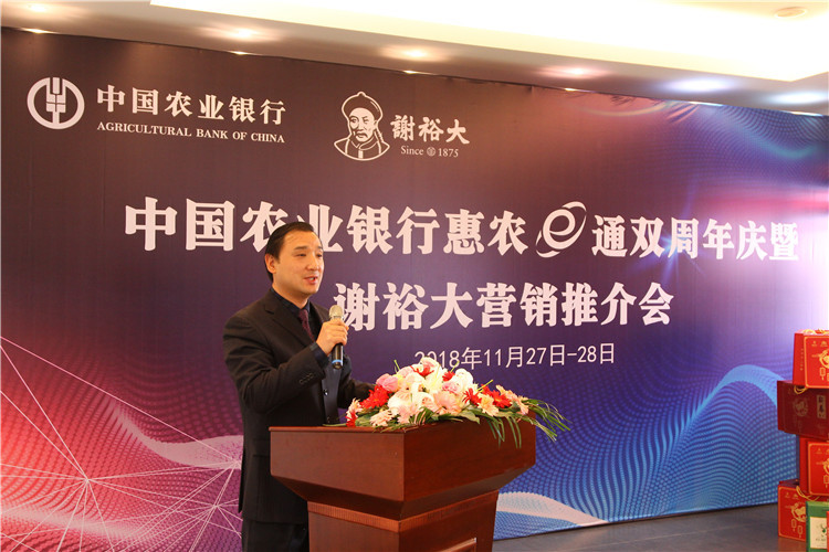 謝裕大副總經(jīng)理葉永蔚致辭,對遠道而來的各位領(lǐng)導、嘉賓、經(jīng)銷商朋友們表示感謝,他說到,今天謝裕大攜手農(nóng)業(yè)銀行黃山分行舉辦惠農(nóng)e通電子商務平臺推介會,目的是通過現(xiàn)場的培訓和操作,讓大家了解、熟悉“惠農(nóng)e通”電子商務平臺,旨在逐步打造謝裕大產(chǎn)供銷網(wǎng)絡服務平臺,實現(xiàn)農(nóng)行電商服務與專業(yè)市場商戶經(jīng)營場景的完美融合,構(gòu)建更加精準的線上線下一體化互聯(lián)網(wǎng)金融服務模式;希望在各位積極參與,并多提寶貴意見和建議,謝裕大今后更好地改進、提升服務水平。