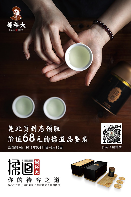 現(xiàn)場的毅行者們來到〖謝裕大茶水補(bǔ)給站〗,親自品味春之鮮,循著茶香,一杯鮮甜的黃山毛峰自在隨飲,洗刷來路的疲累,助力前方更美的旅途。在這里,有穿著懸掛品茗杯裙的茶仙子,還有炒茶、品茶、悟茶道等各種零距離體驗(yàn),給毅行者們360°的美妙茶旅程,為毅行之路補(bǔ)水增香。除了現(xiàn)場福利之外,5.11——6.15活動期間,凡是參加2019環(huán)巢湖毅行大會的毅行者們來到「謝裕大」不僅有好茶喝,更有好茶相贈。廣大毅友憑《毅行手冊》前往謝裕大合肥各門店,即可領(lǐng)取“揉道·黃山毛峰”超值品鑒裝一份。