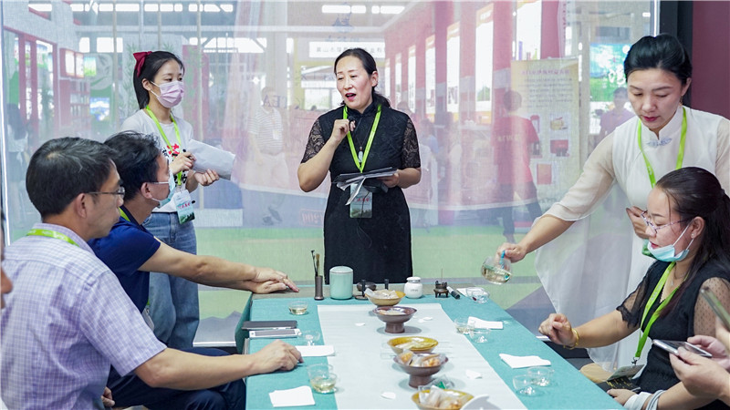 開幕式當天,謝裕大茶藝師為廣大賓客獻上了精彩的茶藝表演,通過茶藝師的專業(yè)演繹和巧手沖泡,展館里也氤氳了清香四溢的茶香,讓人仿佛置身春日的山間茶園,與現(xiàn)場茶友共享悠然好時光。