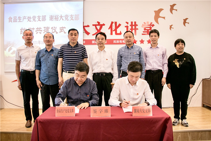 活動現(xiàn)場,在與會領導和黨員代表的共同見證下,安徽省市監(jiān)局食品生產(chǎn)處黨支部書記張斌與謝裕大黨支部書記謝明之代表雙方簽訂結對共建協(xié)議,這一舉措對于雙方履行職能和改革發(fā)展具有特殊的重要意義,為雙方黨組織優(yōu)勢互補、深化合作、共同進步起到積極作用。