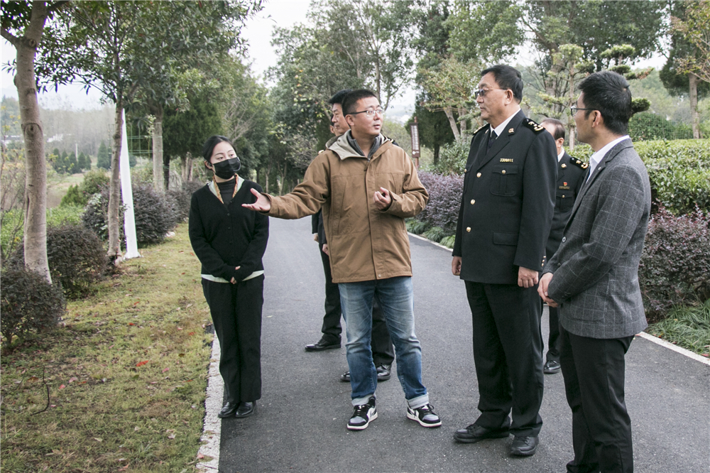 合肥海關(guān)黨委書(shū)記、關(guān)長(zhǎng)辛建民一行深入茶園,聽(tīng)取謝裕大副總經(jīng)理汪奔匯報(bào)相關(guān)工作情況