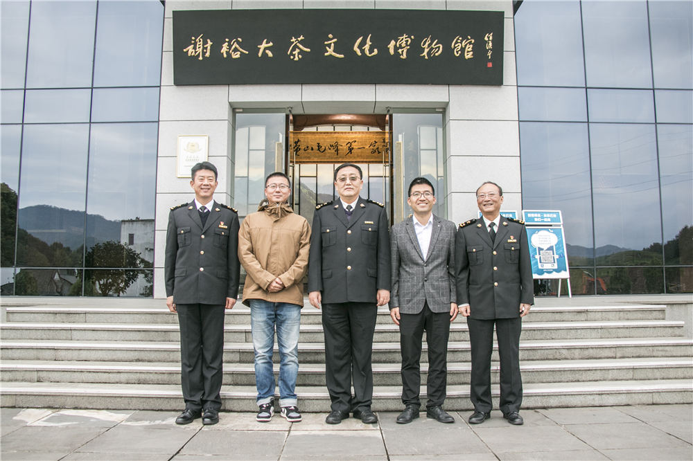 合肥海關(guān)黨委委員、副關(guān)長(zhǎng)謝國(guó)柱(右二)一行參觀謝裕大茶文化博物館