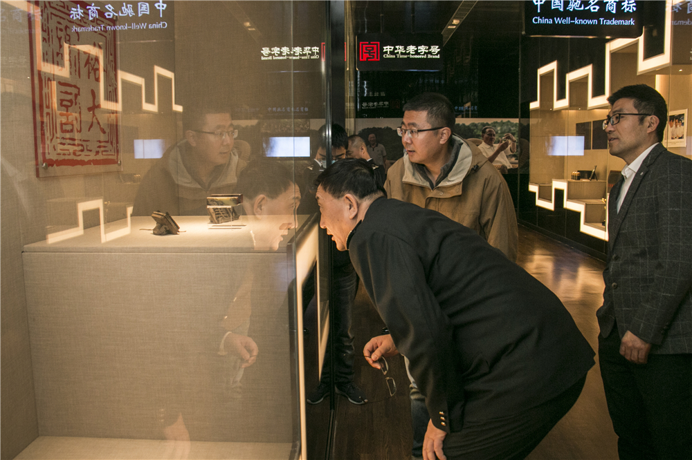 合肥海關(guān)黨委書(shū)記、關(guān)長(zhǎng)辛建民(中)一行參觀謝裕大茶文化博物館