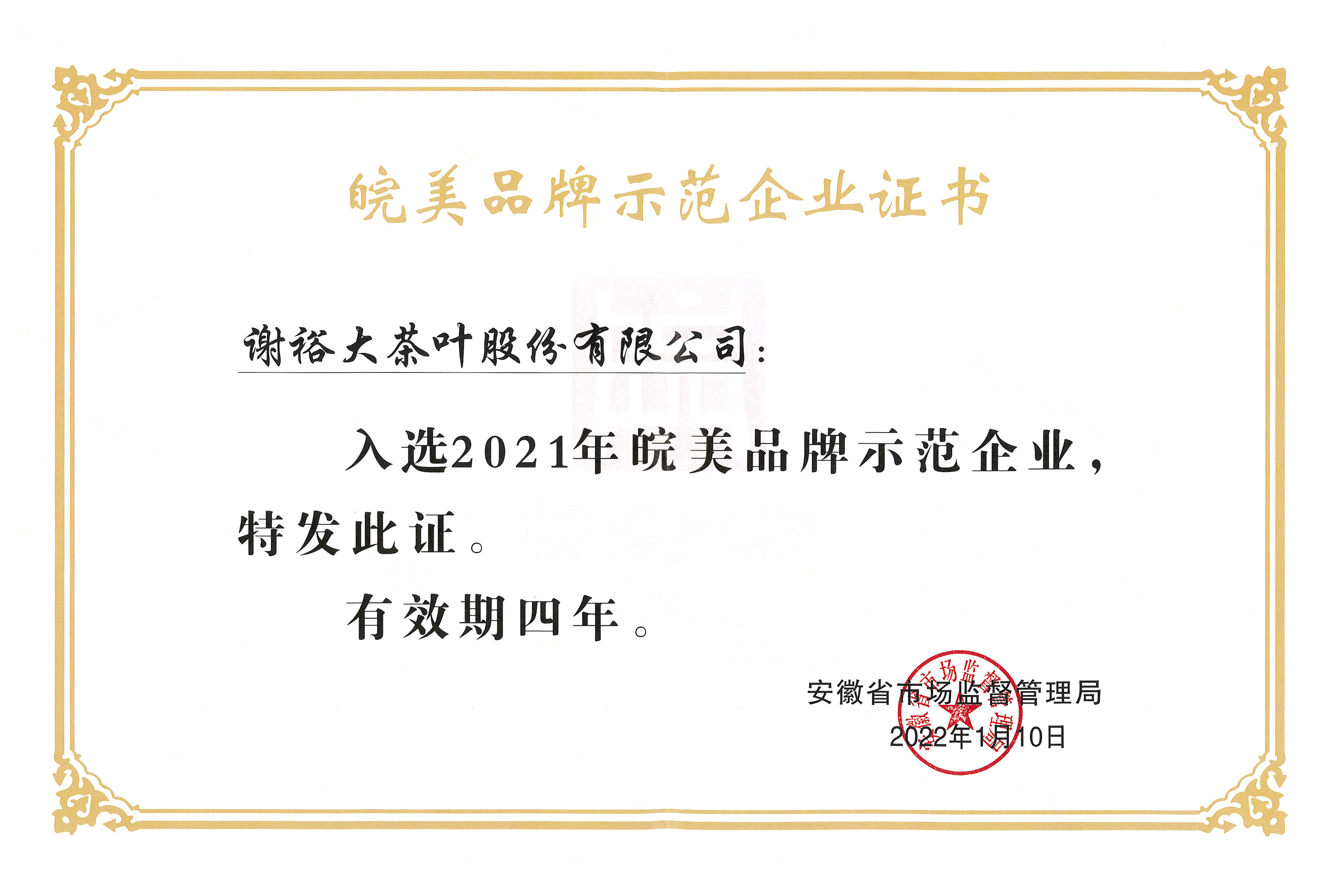 6月23日,黃山市質(zhì)量品牌促進會第一屆會員大會暨成立大會召開,掀開了我市質(zhì)量提升、品牌建設的新篇章。此次大會上為本市榮獲“安徽省首批皖美品牌示范企業(yè)”的五家單位頒發(fā)證書,謝裕大位列其中。獲此殊榮,不僅是對謝裕大百年徽茶品牌形象的認可,更對謝裕大深入貫徹創(chuàng)新發(fā)展理念、大力開展質(zhì)量提升行動、不斷增強市場競爭力和品牌影響力等方面起到了積極的推動作用。