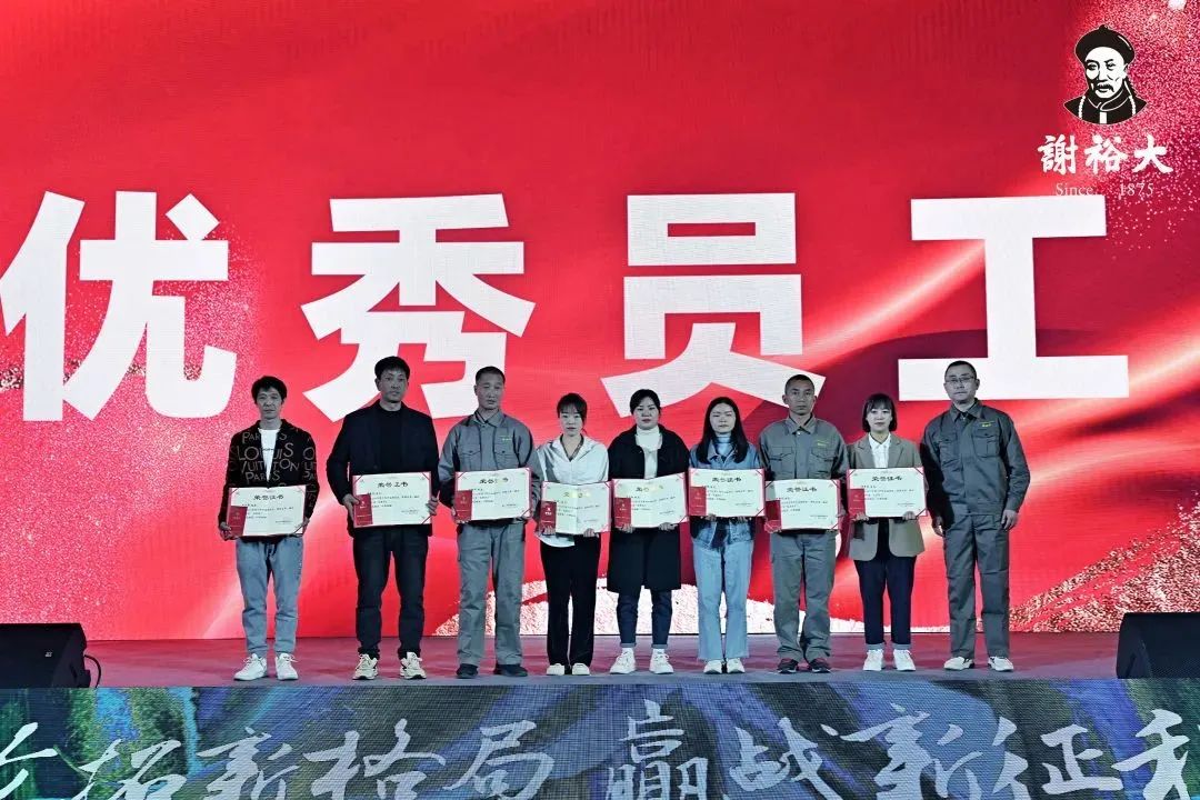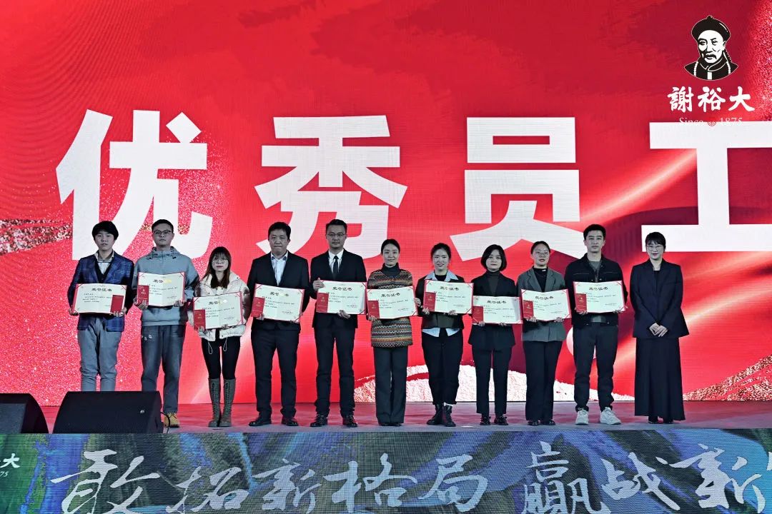 會議在精心制作的《2020-2022年度大事記》中進入了下一環(huán)節(jié),所有裕大人一同回顧了這三年來一個又一個的奮斗歷程,那些拼搏奮進的感人場景與謝裕大的榮耀征程,引起了大家的共鳴。而在謝裕大不斷前進的道路上,總有一群人,他們以榜樣的力量引領(lǐng)前行,映鑒每一份榮光。本次大會為這群人頒發(fā)了“十年裕大人”、“先進員工”、“突擊先鋒獎”、“總經(jīng)理特別獎”四個獎項,以表彰這三年在各自的崗位上不遺余力地奉獻自己的智慧和汗水,為公司發(fā)展添磚加瓦、貢獻力量的員工們。