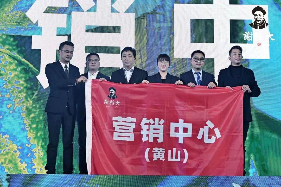 生產(chǎn)總監(jiān)戴志剛、行政總監(jiān)桂利權(quán)、財務總監(jiān)曹天喜、黃山營銷總監(jiān)汪海燕、合肥營銷總監(jiān)張德成、旅游市場營銷總監(jiān)吳愛玲攜各中心板塊負責人一同上臺,從總經(jīng)理謝明之手中接過象征著全新征程的標牌,在嘹亮昂揚的宣誓聲中,向著更高的目標攀登。