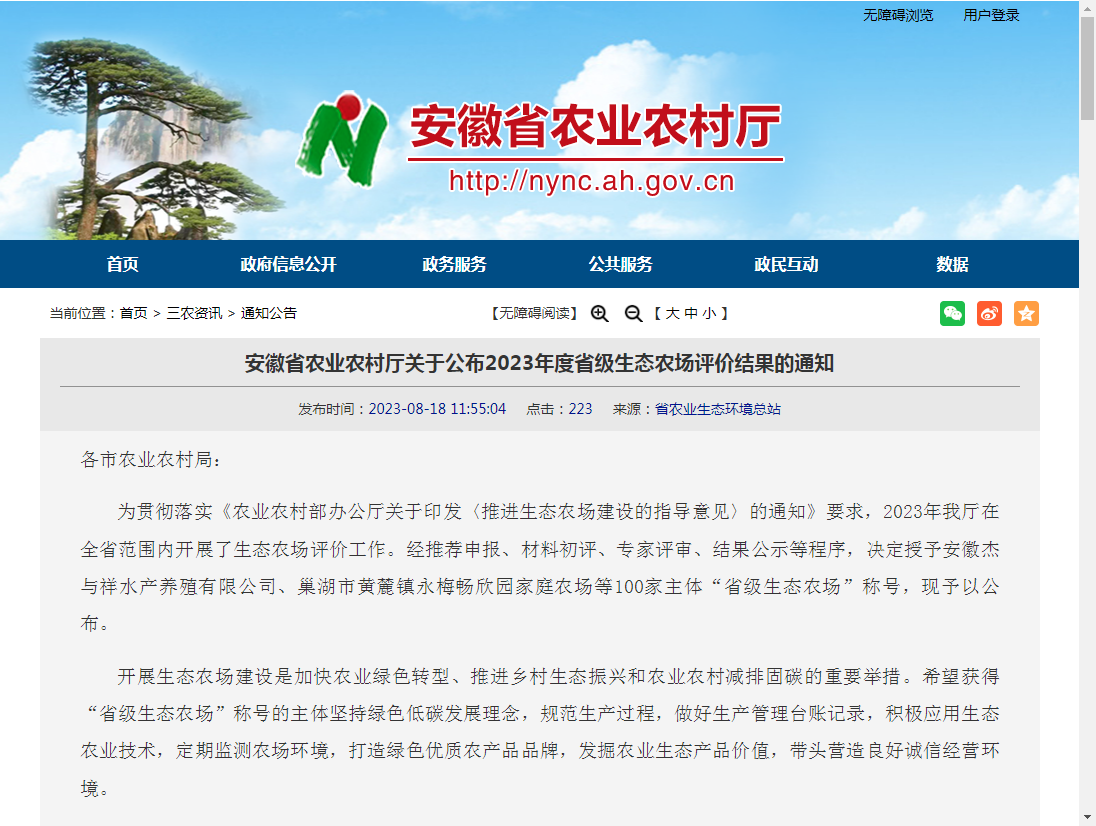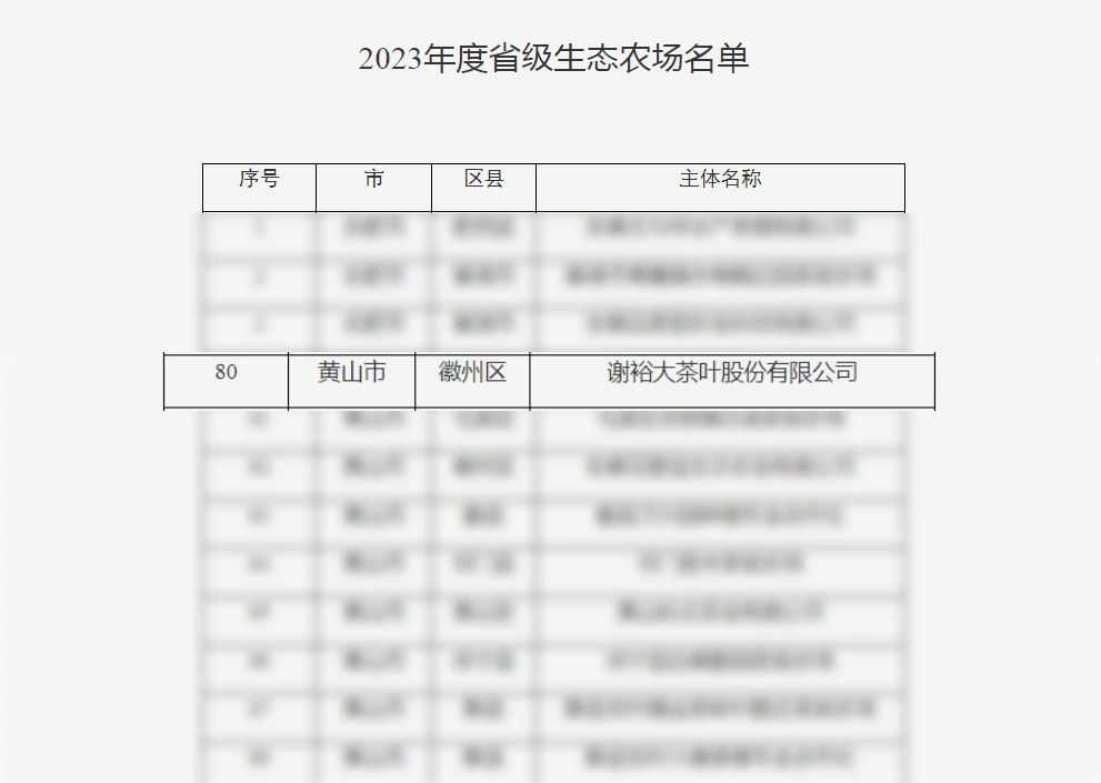 2023年8月18日,安徽省農(nóng)業(yè)農(nóng)村廳經(jīng)推薦申報(bào)、材料初評、專家評審、結(jié)果公示等程序后,正式公布2023年度省級生態(tài)農(nóng)場評價結(jié)果,謝裕大茶葉股份有限公司榮獲“省級生態(tài)農(nóng)場”稱號。