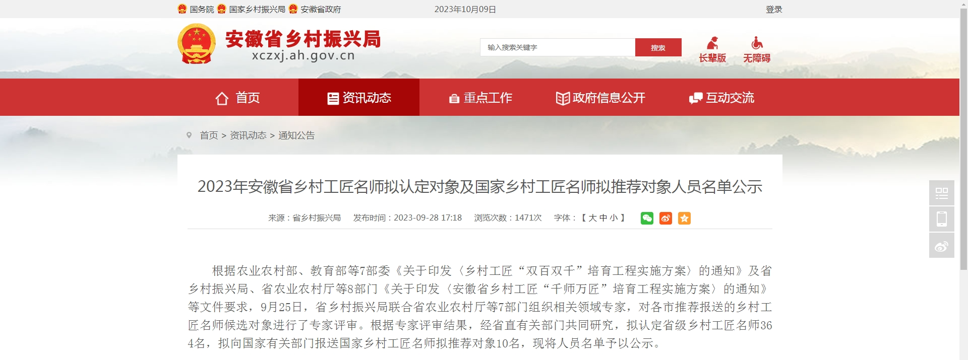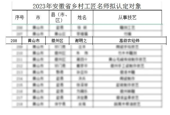 近日,安徽省鄉(xiāng)村振興局發(fā)布了《2023年安徽省鄉(xiāng)村工匠名師擬認定對象及國家鄉(xiāng)村工匠名師擬推薦對象人員名單公示》,其中,謝裕大總經(jīng)理謝明之榮獲“鄉(xiāng)村振興高級農(nóng)經(jīng)師”稱號。