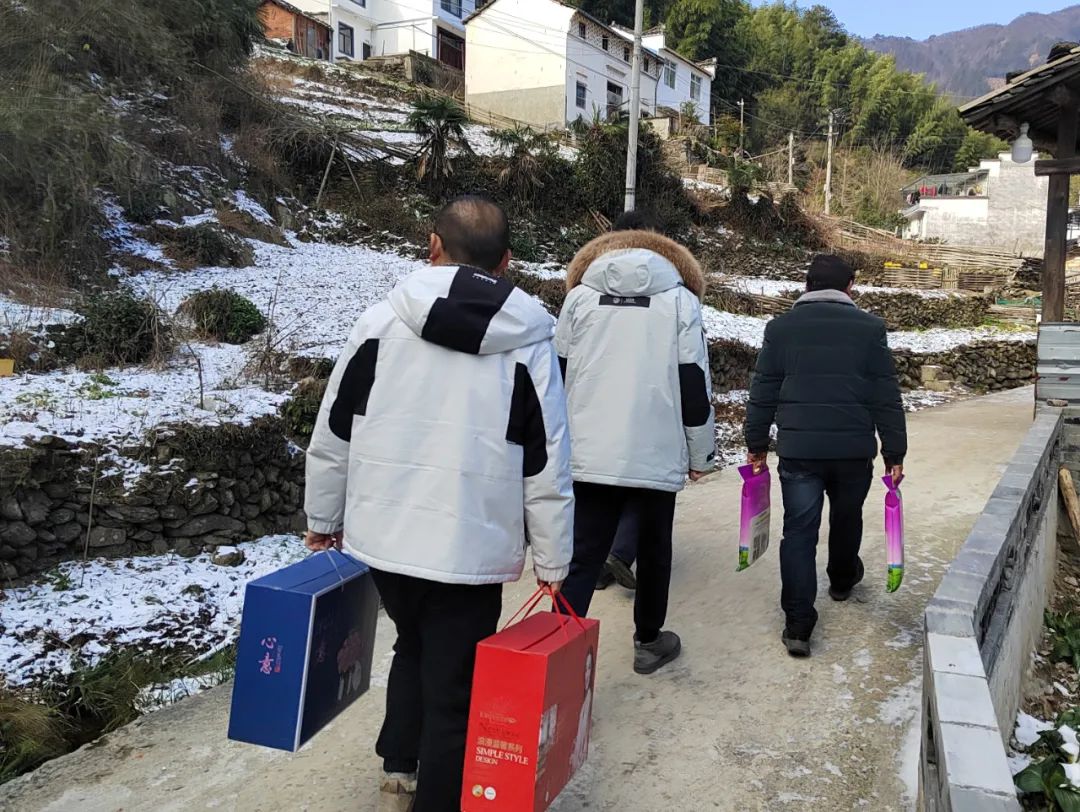 2024年1月25日,謝裕大總經(jīng)理謝明之一行人,駕車趕往黃山市徽州區(qū)富溪鄉(xiāng),為全村近313戶65歲以上老年人發(fā)放了米、油等生活必需品,并向他們致以新年的問候與祝福。在走訪中,謝明之悉心詢問老人的身體狀況、生活情況等,在凜冽冬日里將溫暖送至老人心間。
