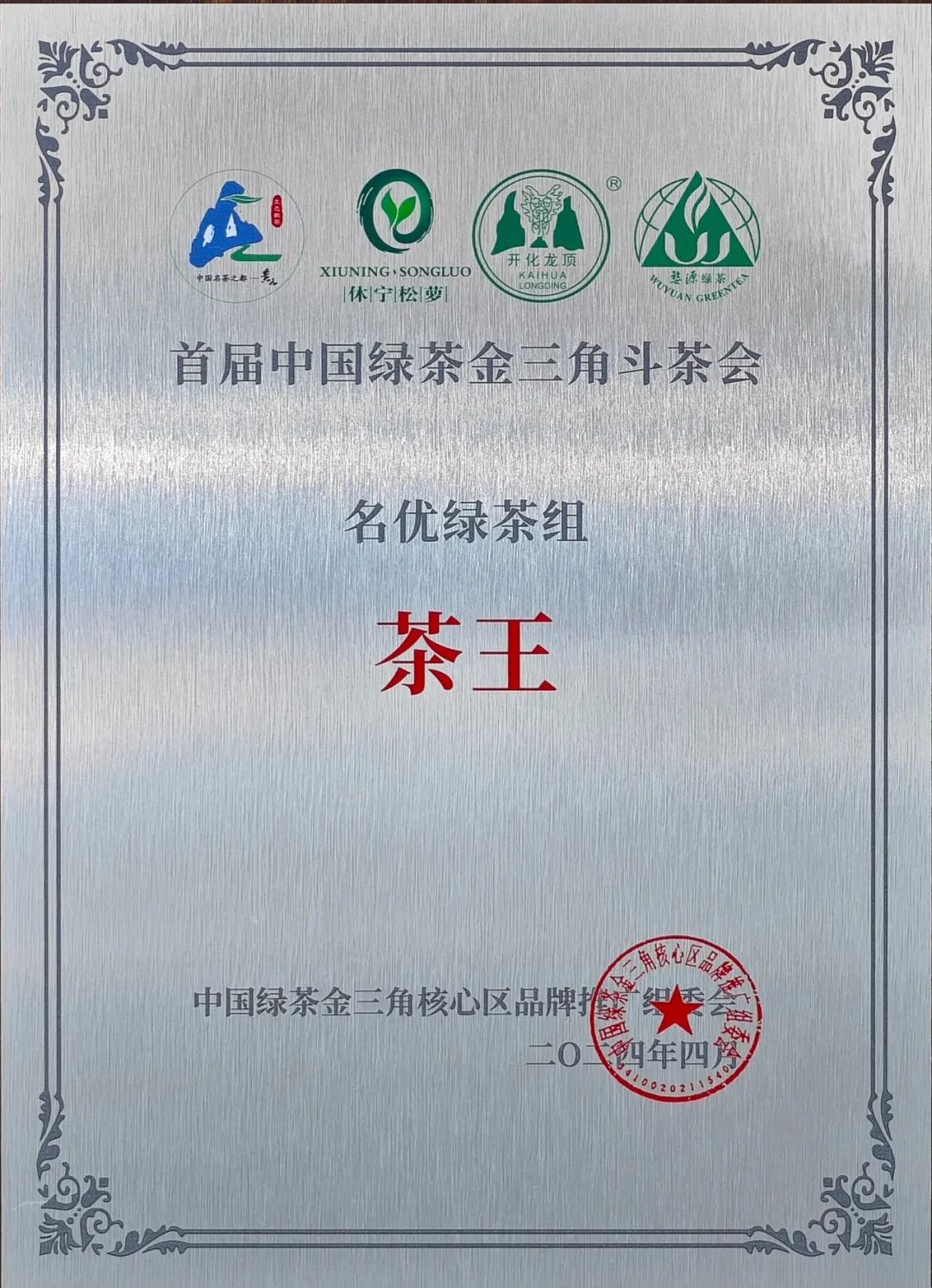 首屆中國綠茶金三角斗茶會主題為“綠茶金三角,名茶薈萃地”,斗茶會審評組按照“公平、公正、公開”的原則,對征集的111個參評茶樣分成名優(yōu)綠茶、外銷綠茶(41022)、紅茶和太平猴魁四個組,依次從外形,湯色,香氣,滋味葉底五項因子進(jìn)行綜合評審。謝裕大產(chǎn)品憑借卓越的品質(zhì)通過大賽專業(yè)而嚴(yán)苛的審評,榮獲本次大賽重量級獎項——“茶王”。