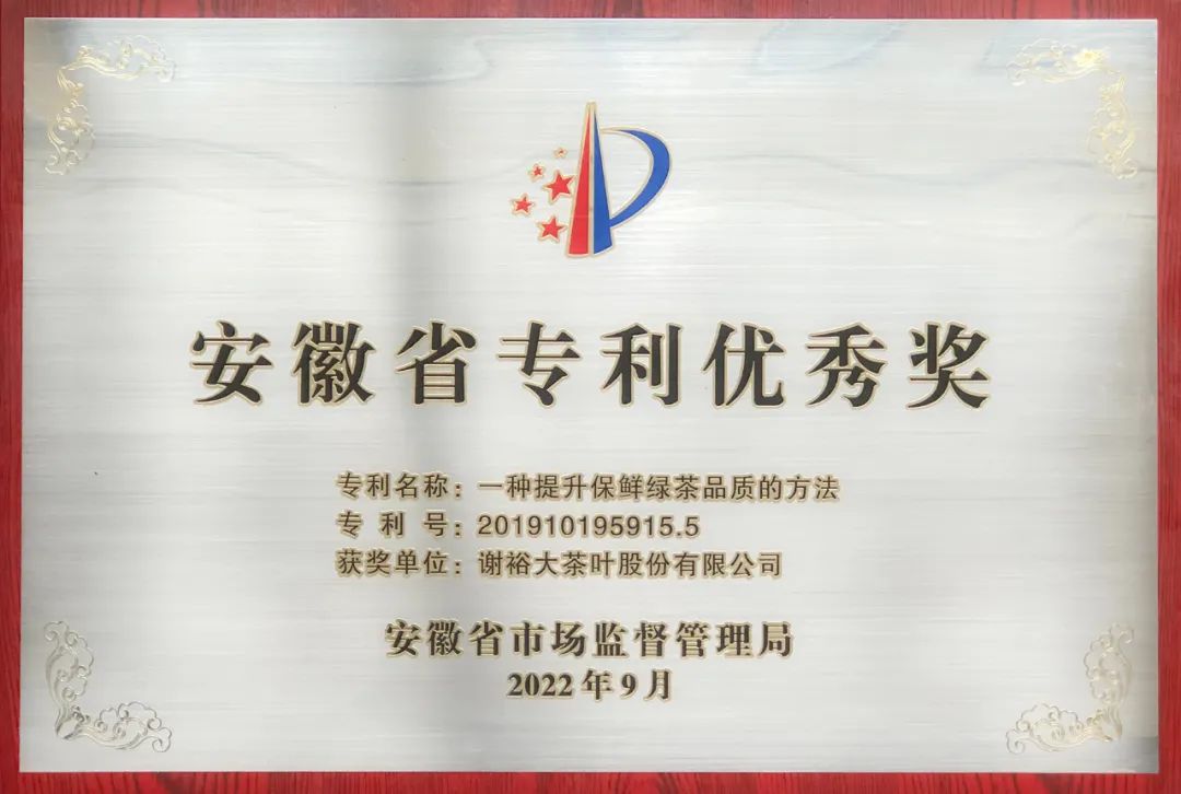 會上,2024年“百場萬企 共建共享”活動正式啟動,發(fā)布了黃山市專利導(dǎo)航成果,并為各項省級知識產(chǎn)權(quán)獎項獲獎集體、人員頒獎。其中,謝裕大在此次大會上憑借“一種提升保鮮綠茶品質(zhì)的方法”榮獲了安徽省專利優(yōu)秀獎。