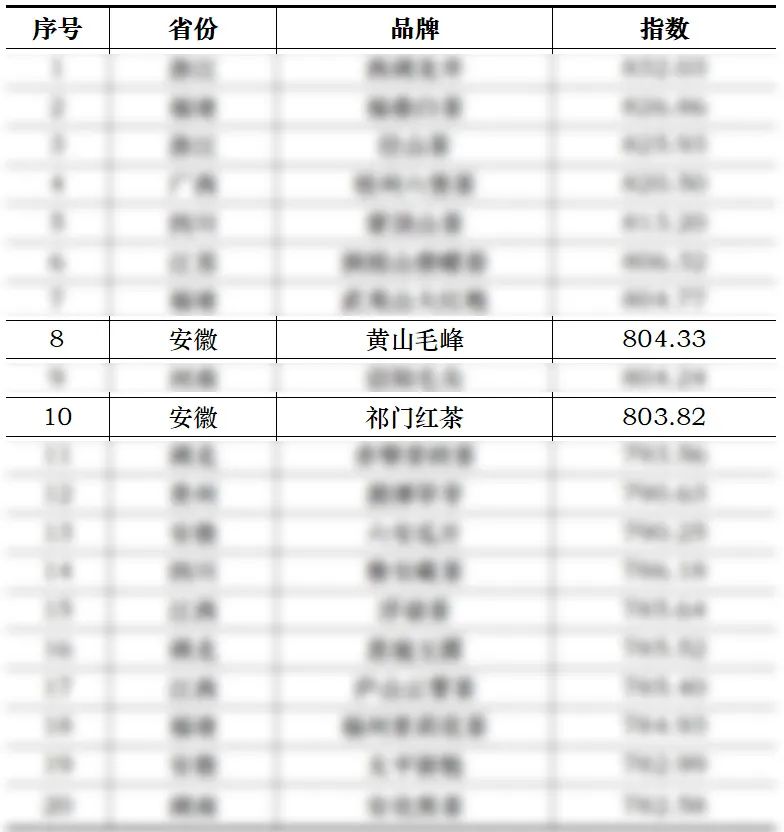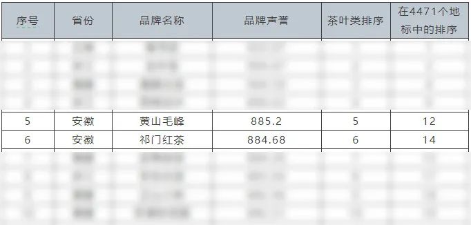 中國(guó)地理標(biāo)志農(nóng)產(chǎn)品(茶葉)聲譽(yù)十強(qiáng)榜