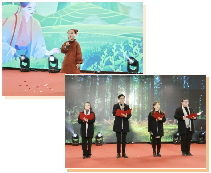 除了歌舞的精彩表演,《謝裕大150周年》《百年傳承 · 茶香千年》兩段朗誦,以其氣勢恢宏的語調(diào)、飽含深情的演繹,帶我們走進(jìn)了一幅謝裕大150年接續(xù)奮斗、闊步前行的壯美畫卷。每一個字句都飽含著對品牌的認(rèn)同與歸屬,也讓在場的每一位聽眾深刻感受到謝裕大所蘊(yùn)含的文化底蘊(yùn)與品牌力量。