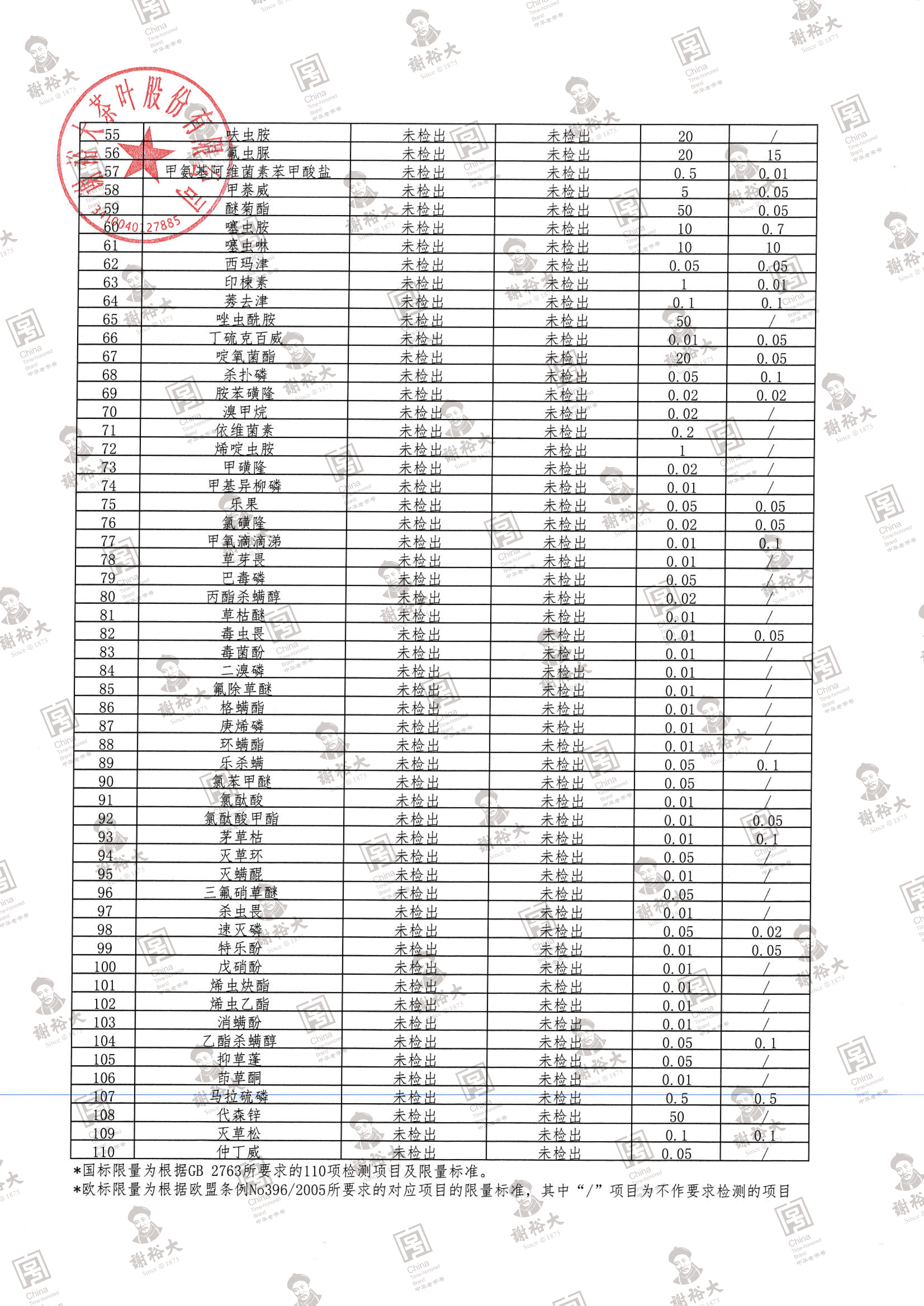 【每天一杯】歐標(biāo)/國(guó)標(biāo)農(nóng)殘110項(xiàng)檢測(cè)對(duì)比